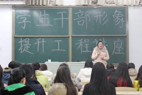 11月24日晚,学生干部形象提升专题讲座第九讲在1202教室举行。本次培训特请校外化妆师卫姗姗主讲,校学生会全体女生干部参加了培训。