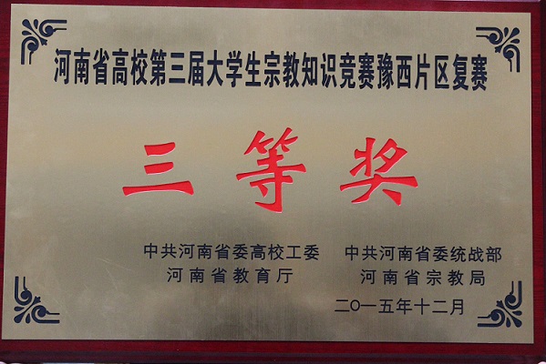 12月10日,由河南省高校工委、河南省教育厅、中共河南省委统战部、河南省宗教局联合举办的第三届大学生宗教知识竞赛在河南科技大学隆重举行。来自豫西片区的多所高校参加了此次比赛,球王会平台派出代表队参赛并荣获三等奖。