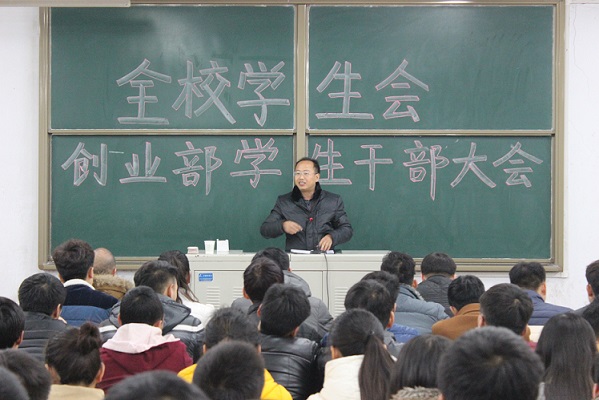 12月18日,全校学生会创业部学生干部大会在1103教室召开。学生处处长黄世谋出席会议并作重要讲话,学生处教师高翔、黄涛、校学生会主席团、各院部学生会主席及全校创业部学生干部参加了会议。