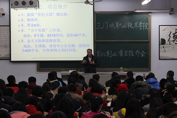 首先,黄世谋围绕众创空间暨创业孵化基地的管理体制、运行模式、项目推介三个方面做出重要报告。他重点推介了微饰界、黄金e族、“天下有我”摄影工作室、金玉文跆拳道馆几个项目,并一一作出详细介绍。他指出,有项目的创业者就创业项目起草创业方案,无项目的创业者可根据学校建立的创业项目库,选择适合自己的创业项目,学校将定期举办项目推介会,为有志于创业的学生提供更多更好的创业平台。最后,尤建中详细介绍了其公司品牌项目德国“彩色王国”魔法棒,希望创客们能够以此作为创业项目,开启创业之路。