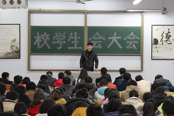1月7日,校学生会全体成员在1109教室召开学生干部大会。