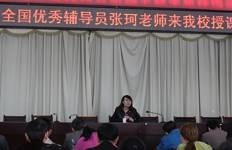 ①4月14日,学校邀请全国优秀辅导员、郑州大学张珂老师来校为全体辅导员做专题培训。
