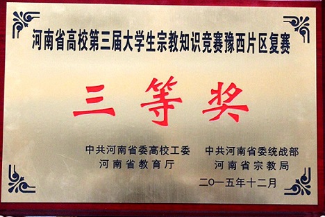 ④球王会平台荣获河南省第三届大学生宗教知识竞赛(豫西片区)三等奖。
