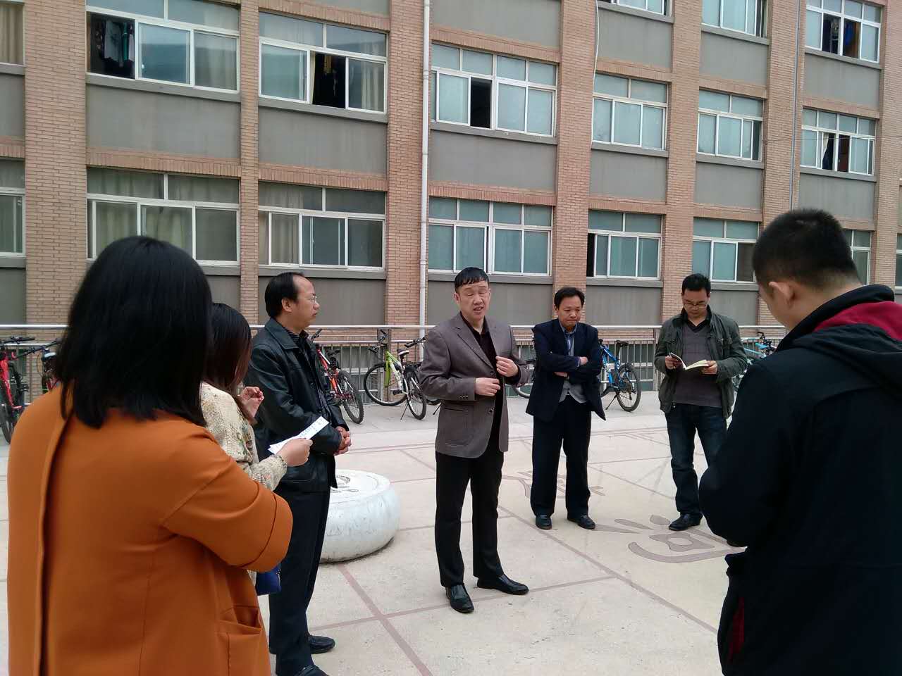 4月5日,副校长马旭东在学生处处长黄世谋、副处长刘学文以及各院部学生科长的陪同下到学生公寓楼检查指导工作。