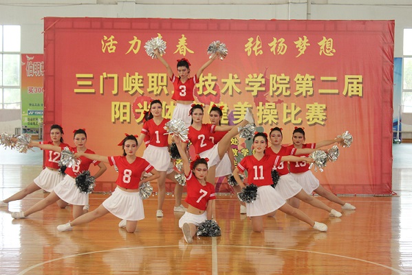 5月12日下午,由学生处、公共教学部主办、校学生会承办的“第二届阳光体育健美操比赛”在体育训练中心举行。公共教学部教师任云兰、文兰颖、王娇云、胡海宁,经济管理学院教师尤佳丽担任比赛评委。