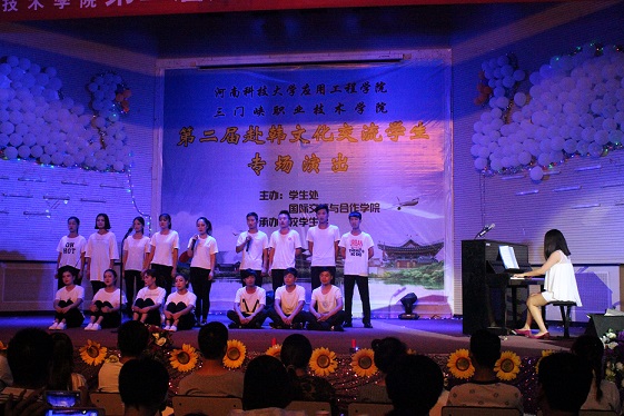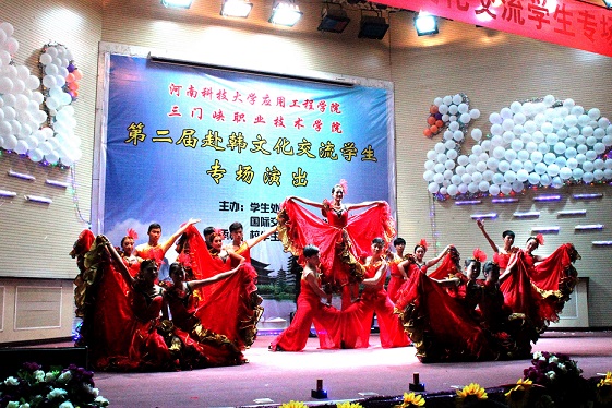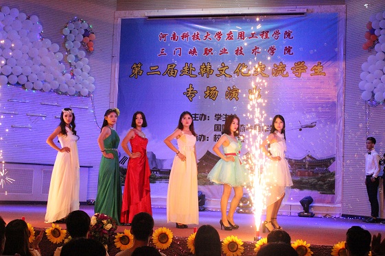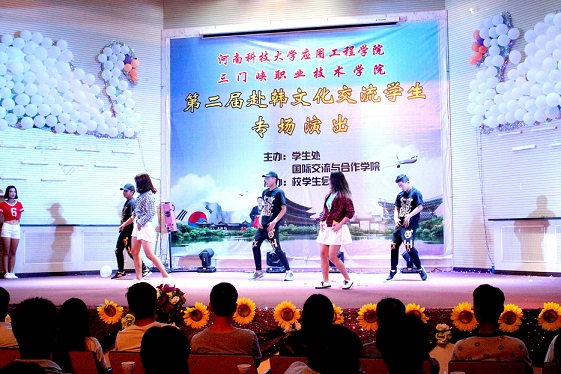 晚会在赴韩文化交流全体成员热情洋溢的舞蹈《弗朗明哥》中拉开了序幕。女生独唱《演员》优美动听、情意绵绵;街舞《He's The Grove》酷炫帅气、动作飘逸;藏族舞蹈《卓玛》活泼有力、热情典雅;现代舞《流光飞舞》轻柔优美、婀娜多姿;韩文歌曲《If You》将现场气氛推向了高潮,全场观众爆发出阵阵掌声和欢呼。赴韩文化交流学生为大家带来了一场盛宴,歌曲、舞蹈、武术、T台秀、钢琴演奏等节目精彩纷呈,令人目不暇接。最后,晚会在一首承载着所有人希望的歌曲《明天会更好》中落下了帷幕。