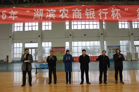 11月21日,由学生处主办的“湖滨农商银行杯”第十七届阳光体育大学生篮球联赛开幕式在体育训练中心举行。公共教学部主任赵桂霞,学生处副处长刘学文、曲扬,湖滨农商银行电子银行部总经理赵小波,裁判长段全中,体育教研室主任任云兰出席此次开幕式。