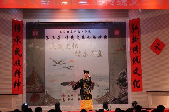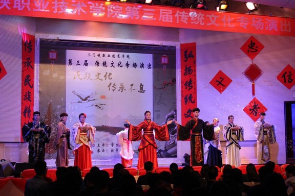 11月21日晚,由学生处主办、校学生会承办的第三届传统文化专场演出在学术报告厅隆重举行。副校长马旭东,应用工程学院院长马涛,医护学院院长马志刚、党总支书记杨丽波,建筑工程学院院长张占伟,师范学院院长苑玉洁,经济管理学院院长齐天峰,食品园林学院院长贠冬梅,党政办副主任雷旭锋,学生处副处长刘学文、曲扬,医护学院副院长周风雷,信息传媒学院副院长张志鹏,电气工程学院副院长金宁章,基础部副主任杜照军等领导嘉宾出席了本次活动,球王会平台800余名师生观看了本场演出。