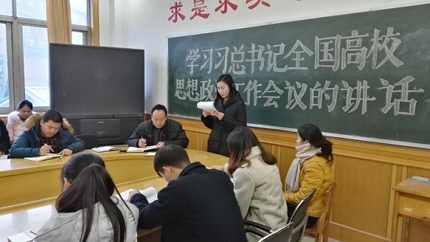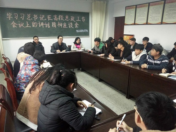 近日,学工部召开会议,要求在全校学工口深入开展学习宣传习近平总书记全国高校思想政治工作会议讲话精神活动。各院部党总支、学生科扎实安排,先后组织了学习习近平总书记全国高校思想政治工作会议讲话精神活动,在全校掀起了学习习总书记重要讲话的热潮。广大师生围绕习总书记讲话精神,展开了热烈学习讨论。电气工程学院、师范学院、市卫校、建筑工程学院、经济管理学院、机电工程学院、基础部、公共教学部、医护学院、信息传媒学院、食品园林学院分别召开专题学习会,传达交流习总书记在全国高校思想政治工作会议精神,并结合实际研究部署球王会平台思想政治教育工作。