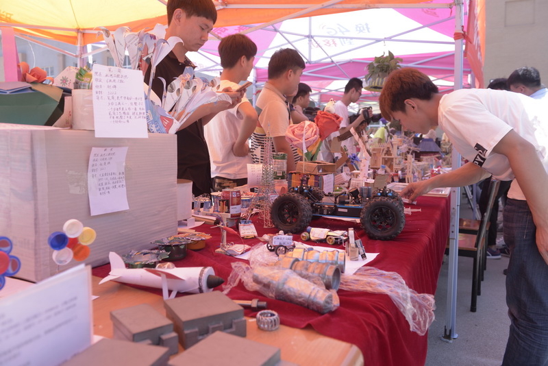 26日,各院部早早的开始搭建展台,摆放作品。其中有办学成果展、院部作品展、机器人展、白天鹅摄影展、学生社团巡展、模特表演等,形式多样、内容丰富。在排列整齐的展台前,各种奇特新颖的创意作品引来了众多参观者的目光,同学们热情地向前来参观的师生、游客介绍自己的创意作品。精美的手工制作、汽车模型、无人机、3D打印机、智能机器人、动漫画展、室内户型设计、创意方案、陶艺制作、绘画展示、自产啤酒、自制糕点、花艺展示、书法展示等,令人眼花缭乱、目不暇接。这些创意作品既展示了广大学生独具匠心的设计,又彰显了同学们的创新意识和动手能力。本届大赛共设展台(展区)11个,征集各式各类参赛作品5000余件。