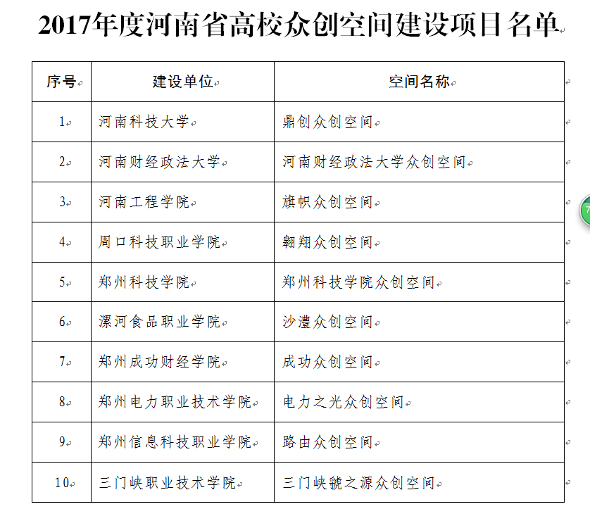9月15日,从省教育厅传来喜讯,球王会平台虢之源众创空间被确定为河南省高校众创空间建设项目。