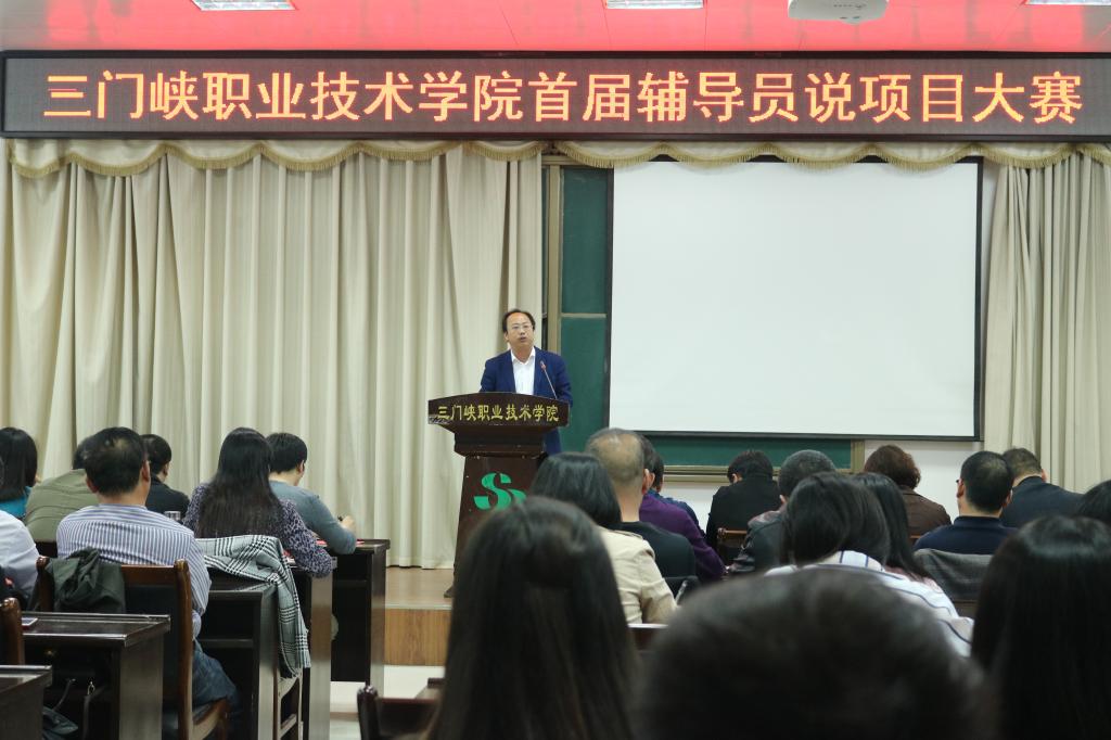 2018年4月10日,学校首届辅导员“说项目”大赛——辅导员精品项目竞赛在1106会议室举行。党委委员、副校长马旭东,学工部部长、学生处处长黄世谋,信息传媒学院院长王军才、医护学院党总支书记杨丽波、师范学院党总支书记樊卫兵、公共教学部党总支书记孙富平、电气工程学院党总支书记刘国梅、机电工程学院党总支书记袁维春、应用工程学院党总支书记贠莹、食品园林学院党总支书记杜军、建筑工程学院党总支书记任安忠、经济管理学院党总支书记辛峰、基础部党总支书记刘宏及各院部主管学生工作副院长、学生科长和全体辅导员观看了比赛。