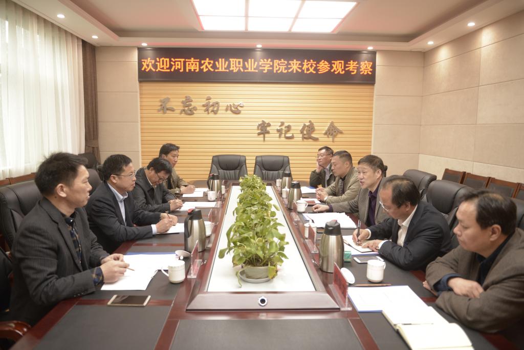 4月12日,河南农业职业学院副校长陶华、学工部部长乔建法、后勤管理处处长周士锋、学生处副处长郭宏敏一行4人来球王会平台参观交流。球王会平台校长吴勇军在办公室会见了陶华一行;党委委员、副校长马旭东,学工部部长黄世谋,总务处副处长张耀祖,学生处副处长刘学文,电气工程学院副院长金宁章等与陶华副校长一行在第三会议室进行了座谈交流并陪同参观考察。