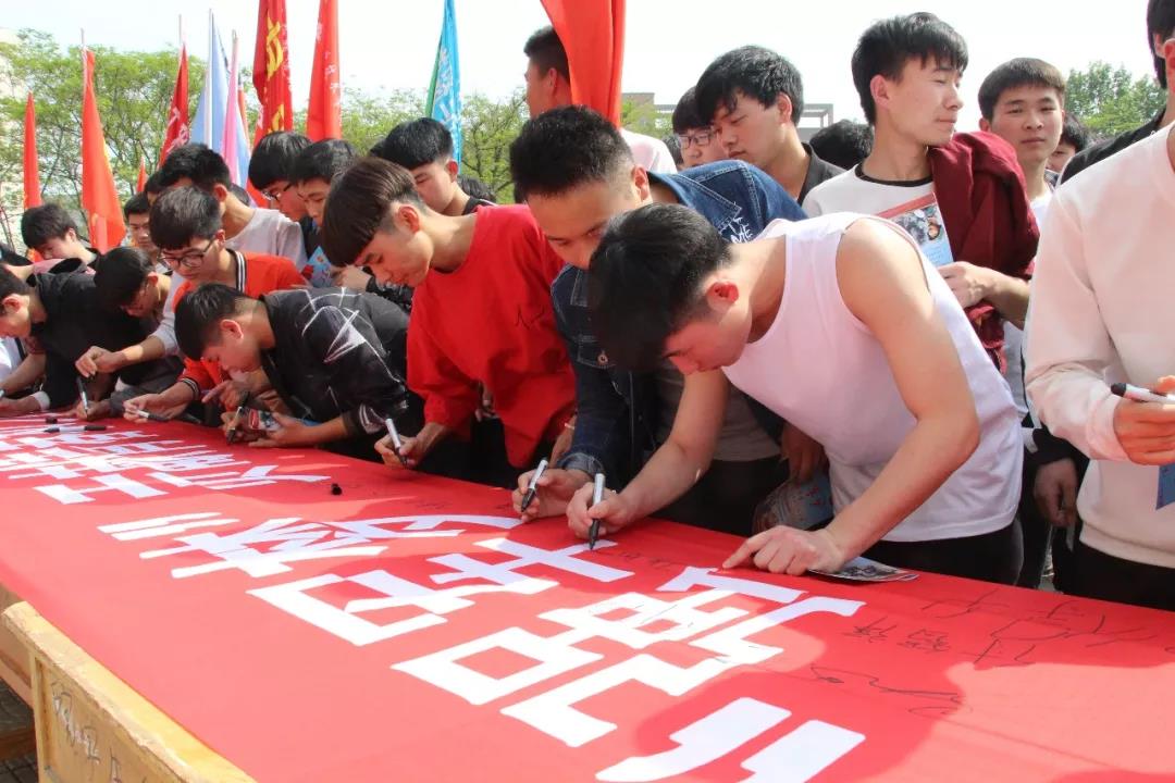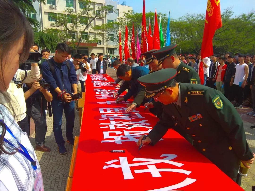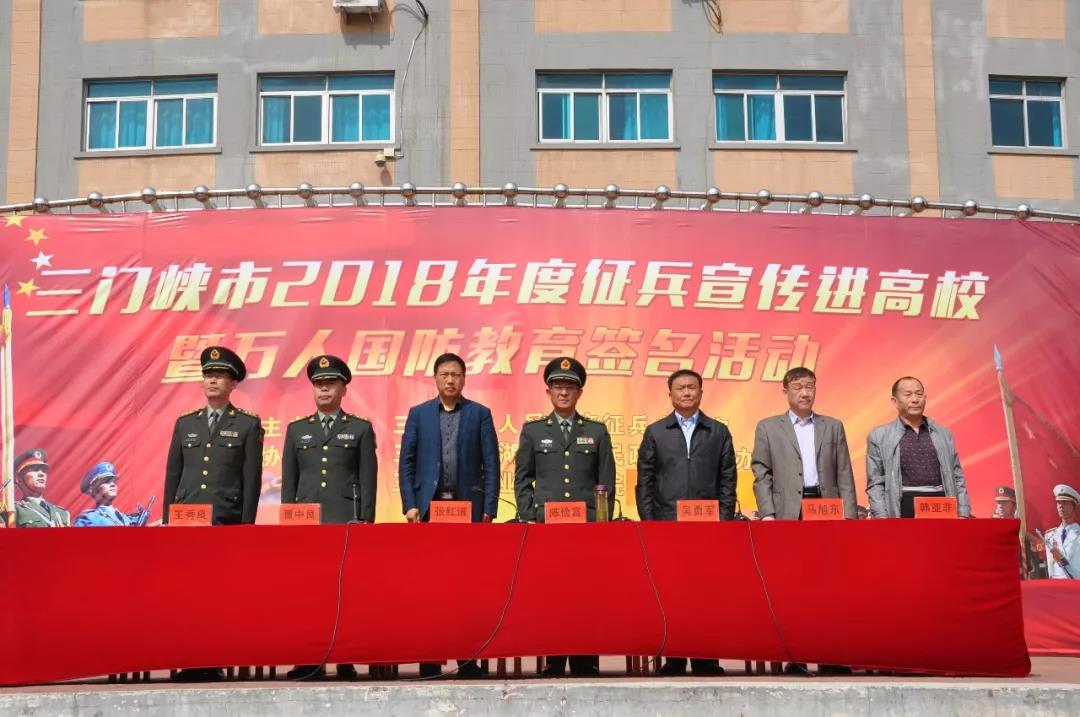 4月26日下午,三门峡市2018年度征兵宣传进高校暨国防教育万人签名活动球王会平台文化广场举行。三门峡军分区副司令员陈俭富,三门峡市人民政府副秘书长张红谱,校党委副书记、校长吴勇军,党委委员、副校长马旭东和校武装部部长、保卫处处长韩亚非等领导出席活动。球王会平台万余名学生现场接受了爱国主义、兵役法规、国家安全形势等教育。