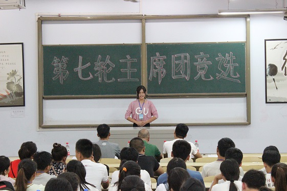8月28日,校学生会第七轮主席团竞选宣讲活动在1109教室举行,学生处主管老师黄涛、14级主席团成员周飞朋、王德龙聆听了本次比赛,校学生会全体学生干部参加了本次活动。