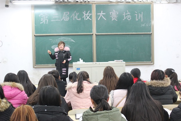 本次讲座内容为化妆指导,卫珊珊首先了解学生干部对化妆的认识程度,并对学生干部的疑难之处作出了详细解答。她指出,妆容要根据发型、脸型、衣着、气质来确定,并对在场学生干部作出了现场指导。她精彩的讲解拓展了学生干部的化妆知识,赢得了大家热烈的掌声。