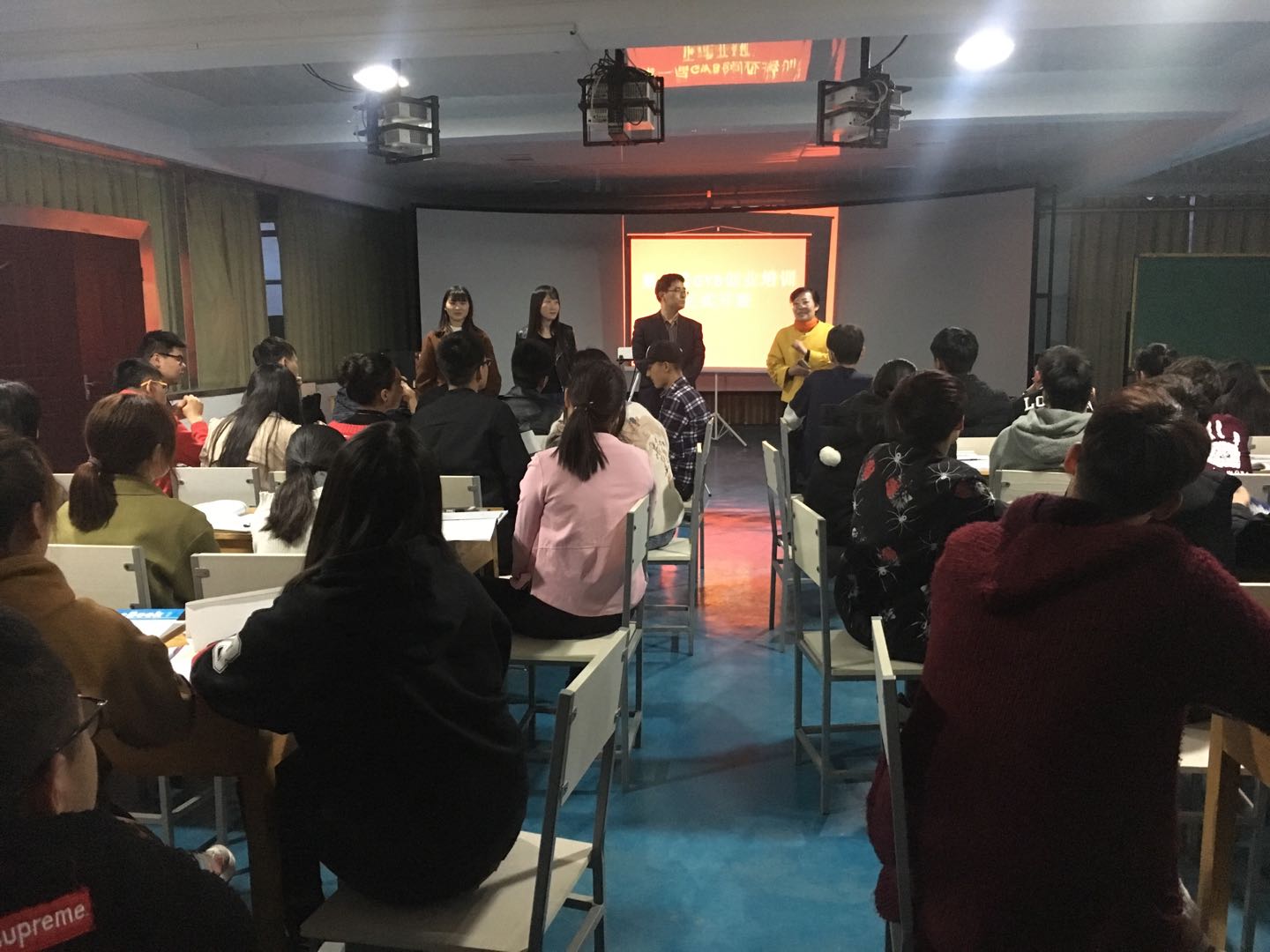 4月5日晚,球王会平台组织第一期GYB创业培训班在6号综合楼6600开班。三门峡市劳动就业培训中心创业导师高岚老师、张君老师,经济管理学院党总支书记辛峰及辅导员李梦思老师出席开班仪式,2017级电子商务专业60名学员参加了此次开班典礼。